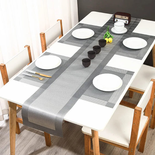 7-Piece Woven PVC Dining Set with Table Runner and Six Placemats Elevate your dining table presentation and ensure protection with this complete 7-piece set, which includes one elegant table runner and six coordinating placemats. Constructed from durable, easy-to-maintain PVC material, both the runner and the mats feature a sophisticated woven...