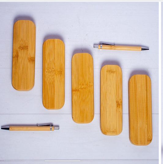 Premium Bamboo Wood Pen and Case Set (Double) This beautiful set features two high-quality pens housed in a matching bamboo wood case. Crafted from sustainable, natural bamboo, this set offers an elegant and professional aesthetic for the executive, student, or creative professional. The finely finished wood is smooth to the...