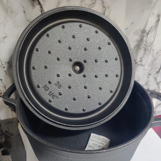 This is a premium quality, heavy duty cast iron pot designed for superior cooking performance in any kitchen. Measuring twenty four centimeters in diameter, this substantial Dutch oven is perfect for preparing soups, stews, braises, and baked dishes for family meals. Cast iron is known for its exceptional heat retention...