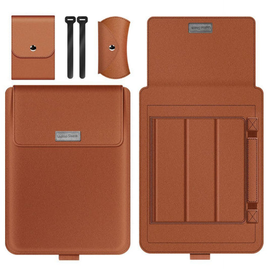 Elevate your portable workspace with this innovative 3-in-1 laptop sleeve, which seamlessly combines protection, functionality, and style. Constructed from premium artificial leather and lined with soft plush material, this accessory effectively safeguards your laptop from scratches, stains, and minor spills. Its multi-functional design allows it to instantly transform from a...