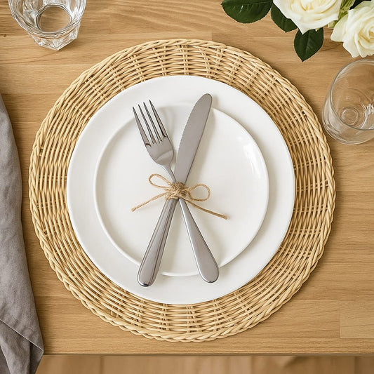 This stylish set of six woven table mats offers an elegant and practical way to enhance your dining experience. Crafted to emulate the natural look of rattan, these mats provide a beautiful, textured foundation for any place setting. They effectively protect your table surfaces from heat, spills, and scratches while...