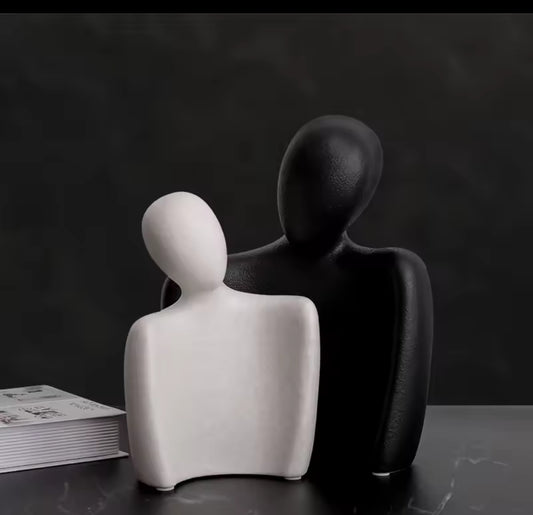 This striking abstract sculpture depicts a minimalist couple, offering a profound yet simple representation of connection and togetherness. Crafted from a durable, unbreakable material, this piece is designed for longevity and resilience, making it suitable for various display environments. Its smooth, matte white finish and fluid, faceless forms create a...