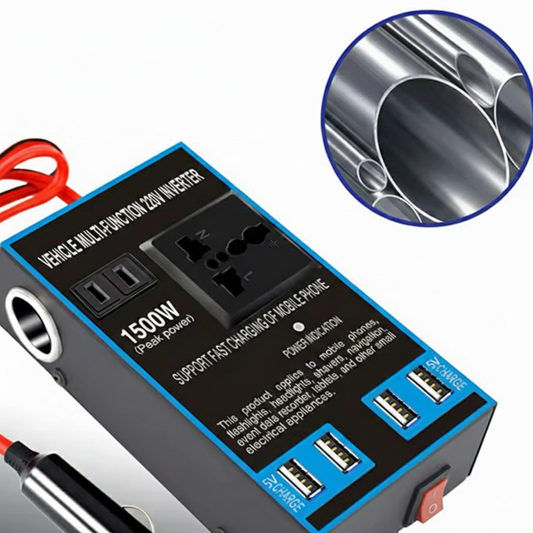 1500W Car Power Inverter This power inverter converts vehicle battery power into usable household electricity to support a wide range of electronic devices while traveling. The unit features a robust 1500W output capacity that ensures reliable performance for demanding equipment and mobile office setups. With integrated safety protocols and multiple...