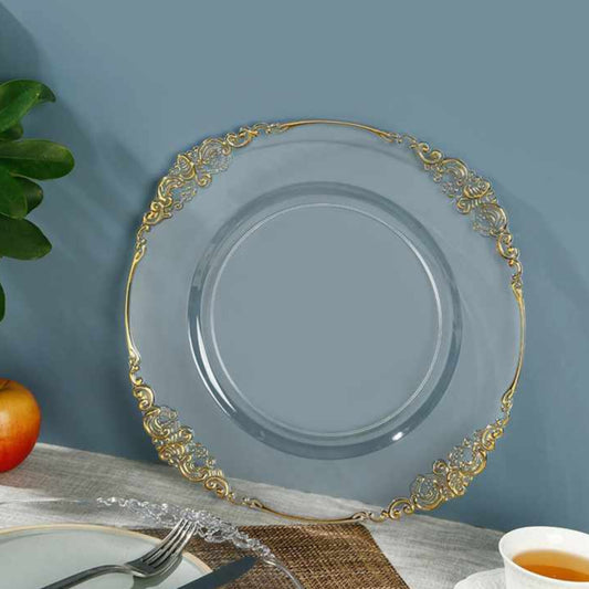 Add a touch of undeniable festive elegance to your dining experience with this set of six gold charger plates. These decorative underplates feature a stunning, organic tree bark or textured coral finish and beautifully curved edges, making them a captivating focal point for any table setting. Measuring 12 inches in...