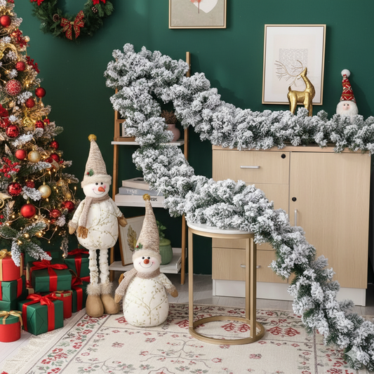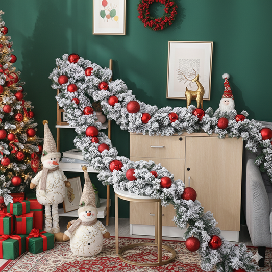 2.7M Christmas Pine Garland Snow Flocking Falling Cedar Rattan Artificial Greenery with no decorations