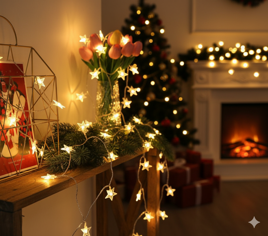 Christmas LED Decorations Lights▪️Power supply:USB plug▪️Light colour:Warm light/colour light▪️Lighting modes:Eight modes▪️Accessories:Ten pendants +remote controlApplicable places:Decorate living room/bedroom/balcony/window etc.