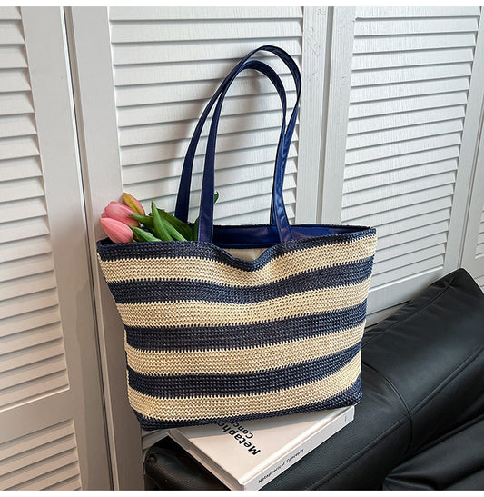 Description This handmade bohemian tote features a classic striped pattern designed for practical daily use across various settings. The bag is constructed with a woven texture that provides a relaxed aesthetic suitable for students, office environments, or outdoor activities. A secure zip closure keeps personal belongings protected while the spacious...