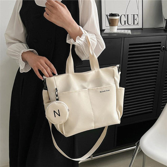 *Double sided Pocket Tote Bag/ Teen Women large capacity Single shoulder / Cross body Bag with Round coin purse*