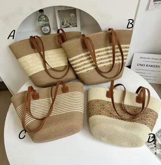 Summer Straw Woven Beach Bag and Hat @ kshs./-♦️Material: plaid straw with leather, cotton lining and has a zipper♦️Occasion: Work, picnic, date, shopping, travel, beach