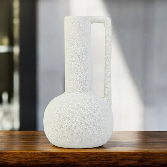 This elegant three piece ceramic vase set offers a sophisticated, minimalist accent for any modern or contemporary home. Each vase features a distinct geometric silhouette, unified by a clean, matte white finish and a subtle, textured surface pattern. The varied shapes and sizes allow for versatile styling, whether displayed together...