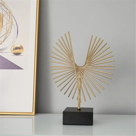 Geometric Sculpture Desktop Display Art Modern Abstract Collectible Statue Home,Office,Gold Iron Art