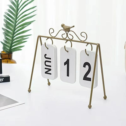 Simple Iron Year Desk Calendar Small Ornaments Office Home Living Room Desktop Calendar Decorations-