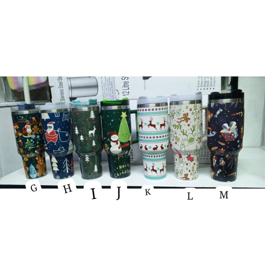 This festive travel tumbler is the perfect way to celebrate the holiday season while keeping your beverages at the ideal temperature. This large capacity cup features double-walled, vacuum-insulated stainless steel construction for superior thermal retention. The exterior showcases vibrant Christmas illustrations, including snowflakes, reindeer, a Christmas tree, and the cheerful...