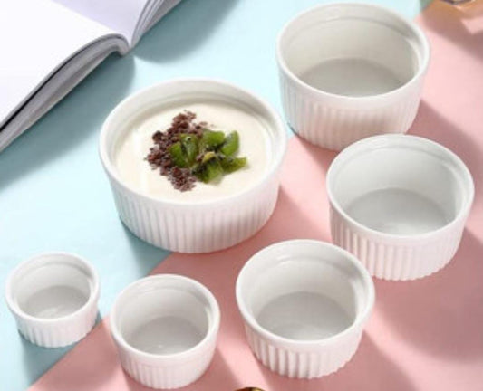 Dessert Bowls* 🍀Material:Ceramic 🍀Colour: White 🍀Size's are as follows:✨2.3" @ ksh 1950 set of 6pcs ✨3"@ ksh 2350 set of 6pcs ✨3.5" ksh 2470 set of 6pcs ✨4" @ ksh 2830 per set of 6pcs 🍀Oven, microwave and dish washer safe.🍀 Excellent and Great finish items.🥳🔥 Hotels products