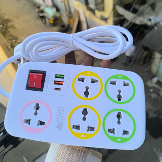 ▪️Made of high quality material for long term use.cute and colorful design▪️Cable length 3 meters▪️Frequency 50/60 Hz▪️Voltage 10A/250V▪️6 sockets + USB sockets▪️Can be used with computers, TVs, refrigerators, phones and all electrical appliances.