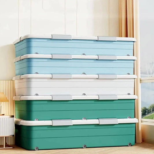 Underbed storage Boxes solve the small trouble of collective dormitory space, environmental protection and tasteless, seamless top cover fully open up the space under the bed, the wardrobe can't be filled, and the under-bed storage can solve the problem Under-bed pulley storage box: two-way pulley, multiple buckles, double-sided opening,...