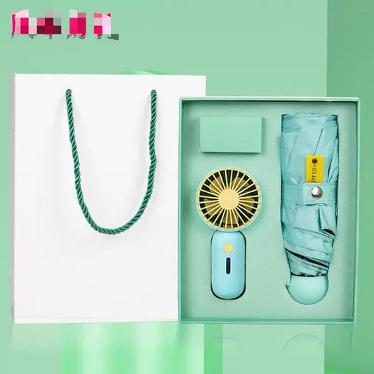 This is a thoughtfully curated two piece set featuring summer essentials, making it an excellent, practical gift. The set includes a compact, high protection umbrella and a portable electric handheld fan for staying cool. This collection is perfectly suited for protecting against both bright sunshine and unexpected rain showers. It...