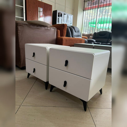 These modern side drawers offer a sleek and contemporary storage solution for any bedroom or living space. Each unit features two spacious drawers designed to keep personal items organized and within easy reach. The minimalist aesthetic is complemented by unique hardware accents and sturdy tapered legs that provide both stability...