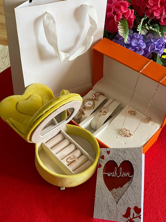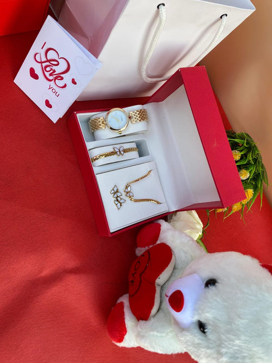 This luxurious Valentines 5-in-1 Gift Pack is the perfect way to express affection, offering a complete set of coordinated accessories and thoughtful presentation elements. The main set typically includes a stylish wristwatch, a matching necklace, a bracelet, and a pair of earrings, all presented in a beautiful gift box. To...
