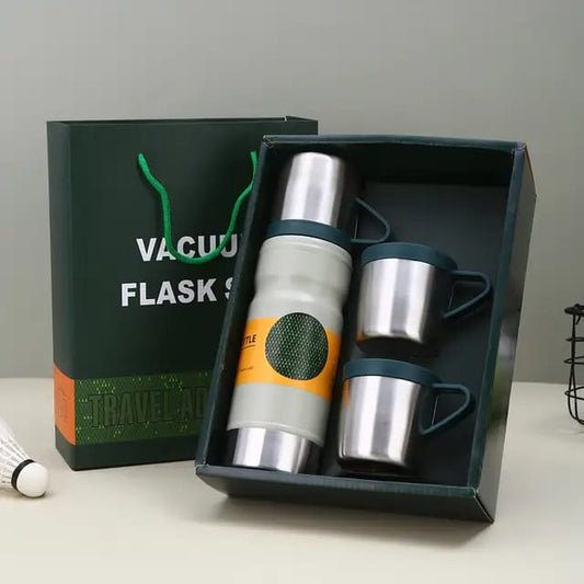 This premium 4 in 1 Vacuum Flask Set is an ideal travel companion, perfectly designed for outings, travels, and gifting. The set includes a large capacity flask and multiple cups, providing a complete solution for sharing beverages on the go. Constructed with a stainless steel inner liner and food grade...