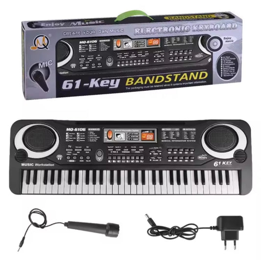 61 Key Kids Electronic Piano This electronic keyboard provides an interactive way for children to explore music through a variety of sounds and learning modes. The instrument features a full range of sixty one keys and includes a wired microphone for vocal accompaniment. An integrated digital display helps users navigate...