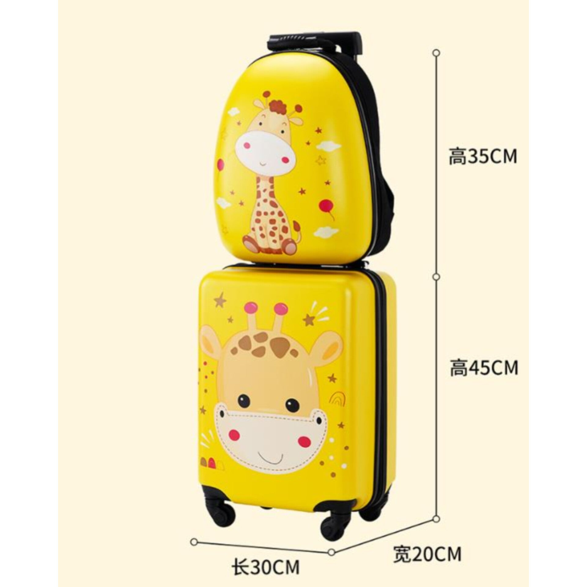 This charming 2-in-1 set includes a trolley suitcase and a matching backpack, perfect for young travelers. It is designed to make family trips and overnight stays fun and stress-free for both children and parents. The durable, lightweight construction is specifically engineered for easy handling by kids, encouraging independence during travel. This luggage set combines playful cartoon aesthetics with practical functionality for all travel adventures.