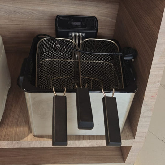 Comes with three baskets 1 full 2 single meshes This deep fryer from will provide you with restaurant-quality fish and chips right in your very own home! With a generous 4.5 litres capacity, you'll have plenty of room to cook for a party. Its easy-to-read illuminated LCD displays a food...