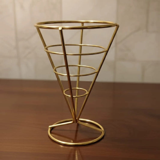 Description This elegant conical chips basket is the perfect way to serve french fries, onion rings, or other appetizers with flair. Constructed from durable steel, the sleek, modern design enhances any table setting, from casual dining to sophisticated parties. The distinctive gold color adds a touch of luxury, making it...