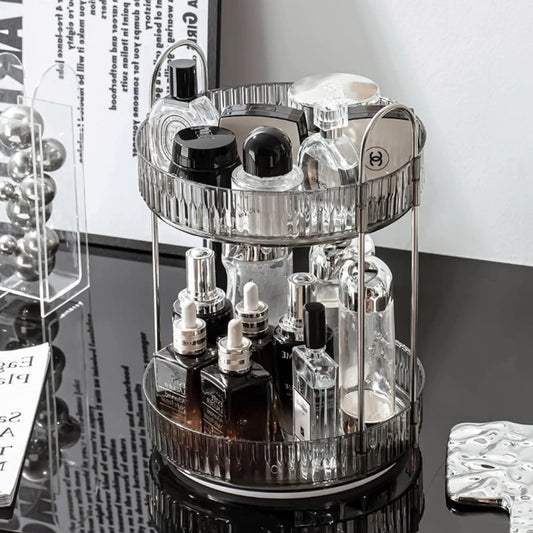 360 Degree 2 tier rotating multifunctional transparent makeup/cosmetic, organizer Easy to use and maintain.Classy unique and stylishEasy to tidy and clean.Stable strong and durable.Made of high-quality material