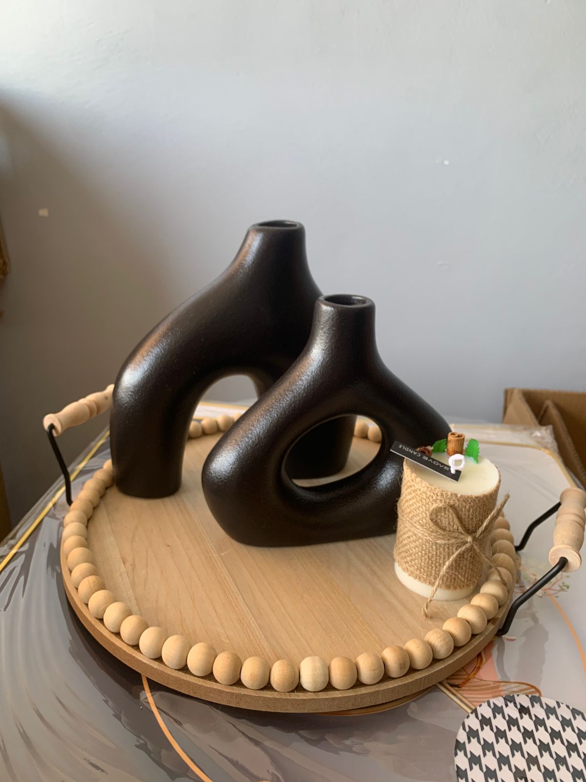 Rustic Wooden Round Beaded Tray - Kshs 3150/-