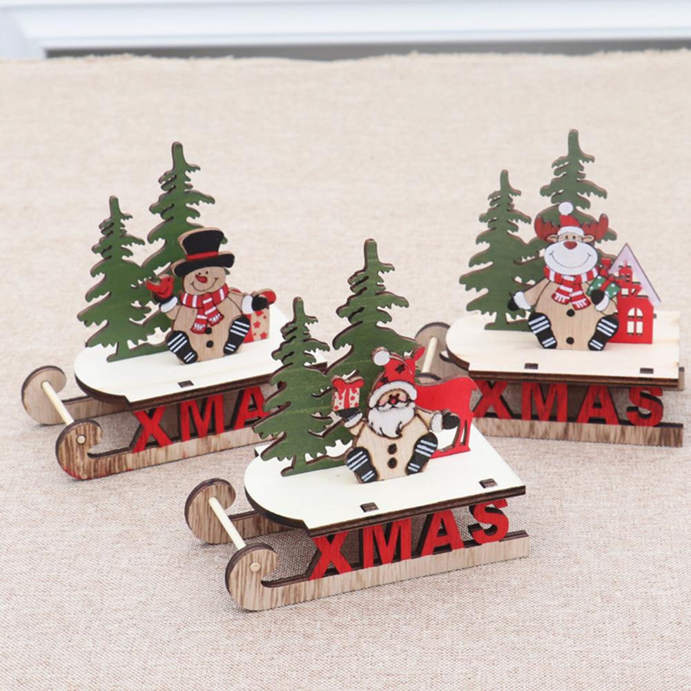 Santa Claus Sleigh Ornament Desk Topper DIY Wooden Craft Christmas Decoration*