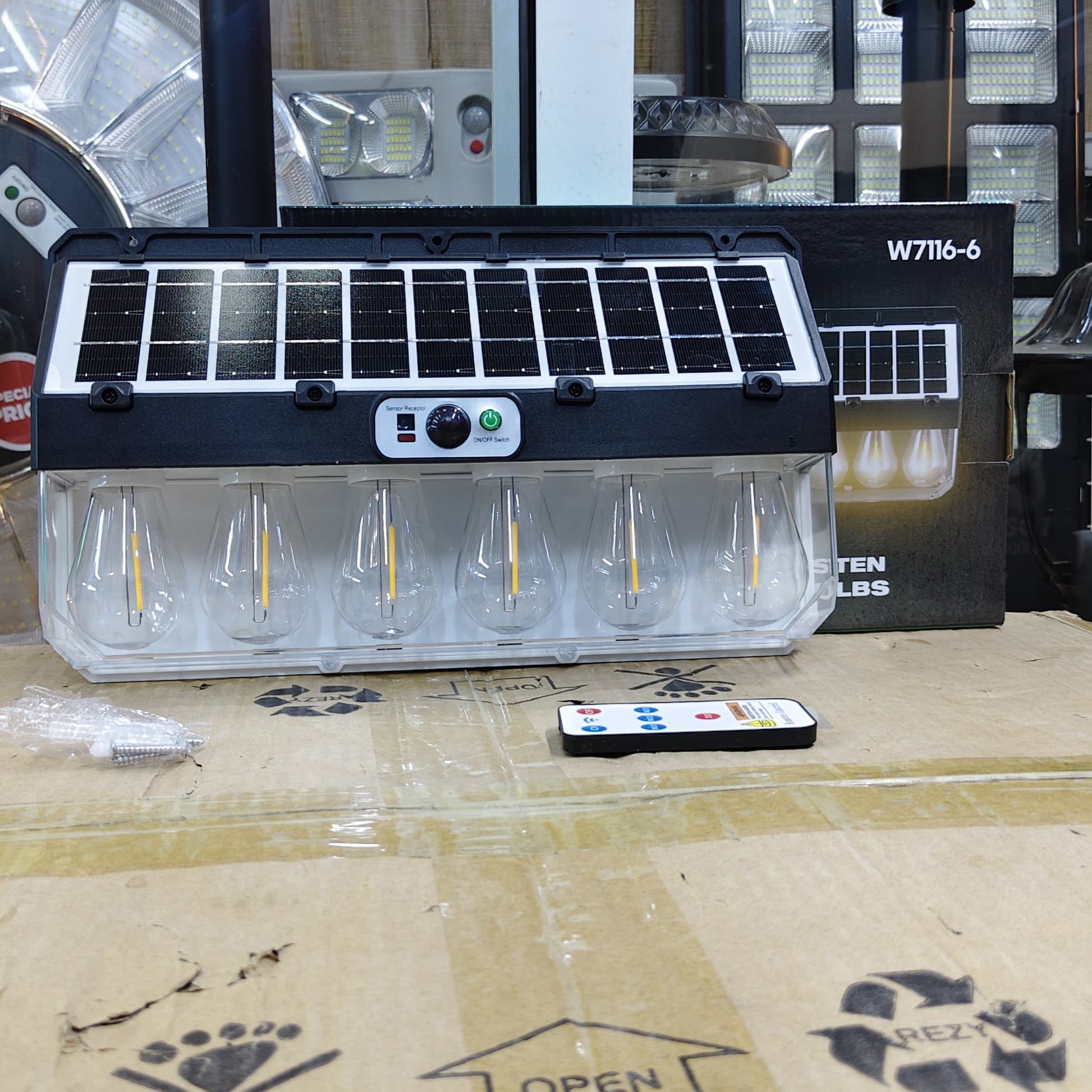 This outdoor lighting fixture uses solar power to provide constant illumination for your home exterior without increasing energy costs. The unit is equipped with six integrated bulbs that produce a warm white light to improve visibility around walkways, entrances, and gardens. A built in motion sensor automatically activates the light when movement is detected, while an intelligent dusk to dawn sensor manages daily power cycles. The system includes replaceable batteries to ensure long term functionality and easy maintenance over time. This durable wall light offers a practical security solution for any outdoor space requiring reliable and automatic lighting.