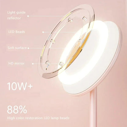 The base of the stand serves as a small tray for holding cosmetics or accessories.