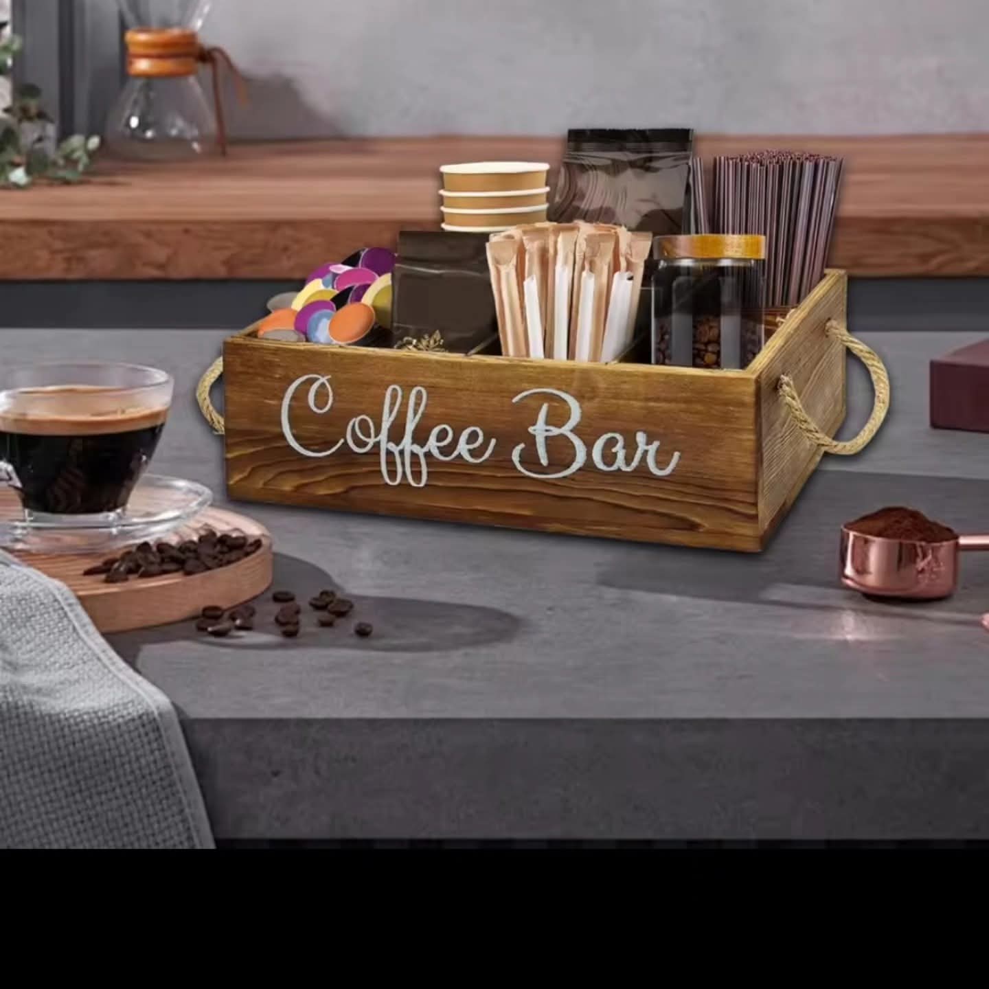 The wooden coffee organizer comes with 3 removable wooden dividers for better storage of k-cups, sugar treasures, tea bags, blenders, light absorbers, coffee creamers,sugar bags, instant coffee, napkins etc