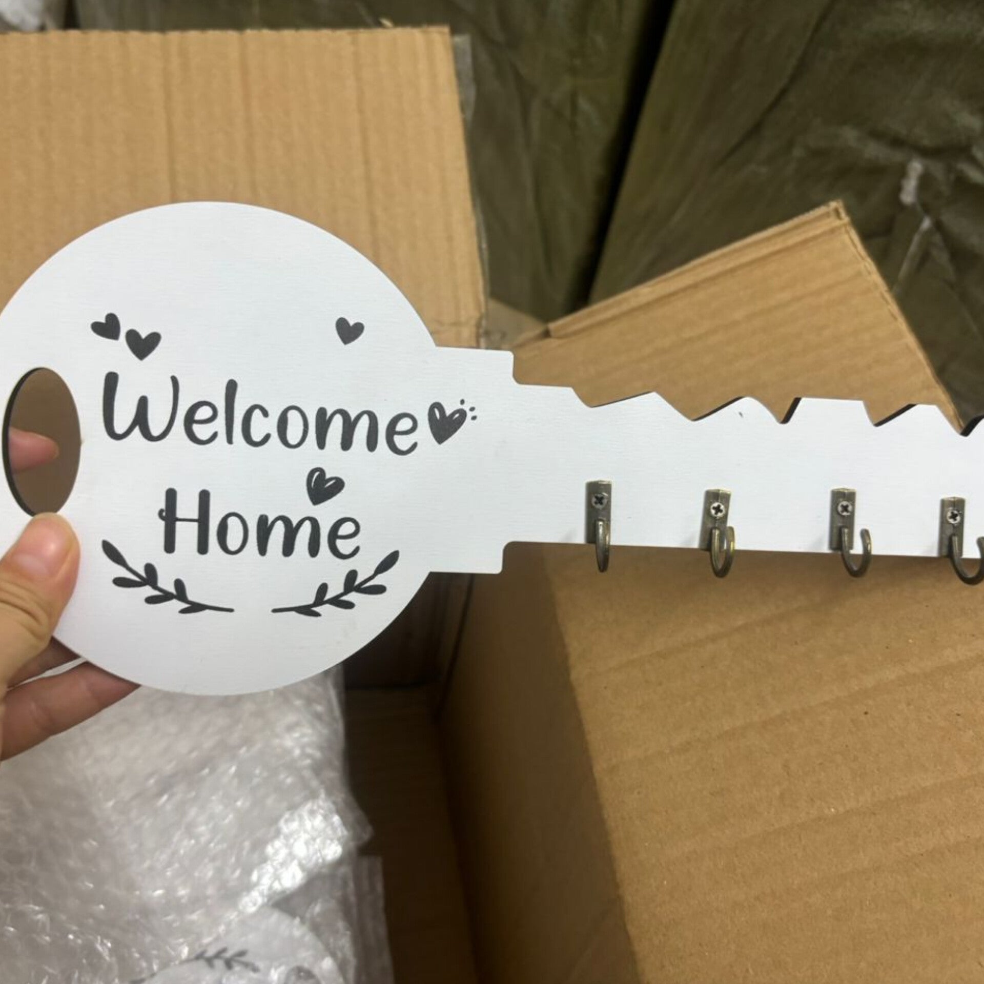Novelty Key Shape Design: Unique, oversized key silhouette adds a playful and welcoming aesthetic to your wall.